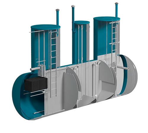 Установка биологической очистки модели ЛОС-Р предназначена для глубокой биологической очистки сточных вод до ПДК водных объектов рыбохозяйственного значения. Установка подземного размещения представляет собой заглубленные и полузаглубленные цилиндрические резервуары.