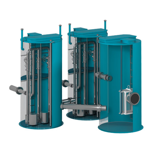 КНС оборудуется приемной камерой с сухими насосами и арматурой, установленной рядом с корпусом.